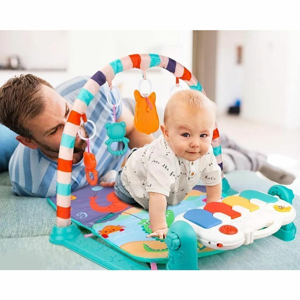 Activa constantemente a tu bebe con música al tocar el piano con los pies. Manta actividades para bebe harán que mejore su motricidad y fuerza. El Bebe usa sus manitas para coger los juguetes que colgaban del arco, estimula los sentidos del bebé. Los bebés patean el piano y jugar con los juguetes colgados. Alfombras gimnasio bebes con piano es genial para entretener a un bebé un largo rato. El arco del gimnasio es muy resistente y flexible, no teme que el bebé tire con fuerza. La altura del arco es adecuada para que los bebés atrapen con éxito los juguetes sonajeros. El bebe puede jugar de 3 formas: boca abajo, boca arriba y sentado jugando con el piano.